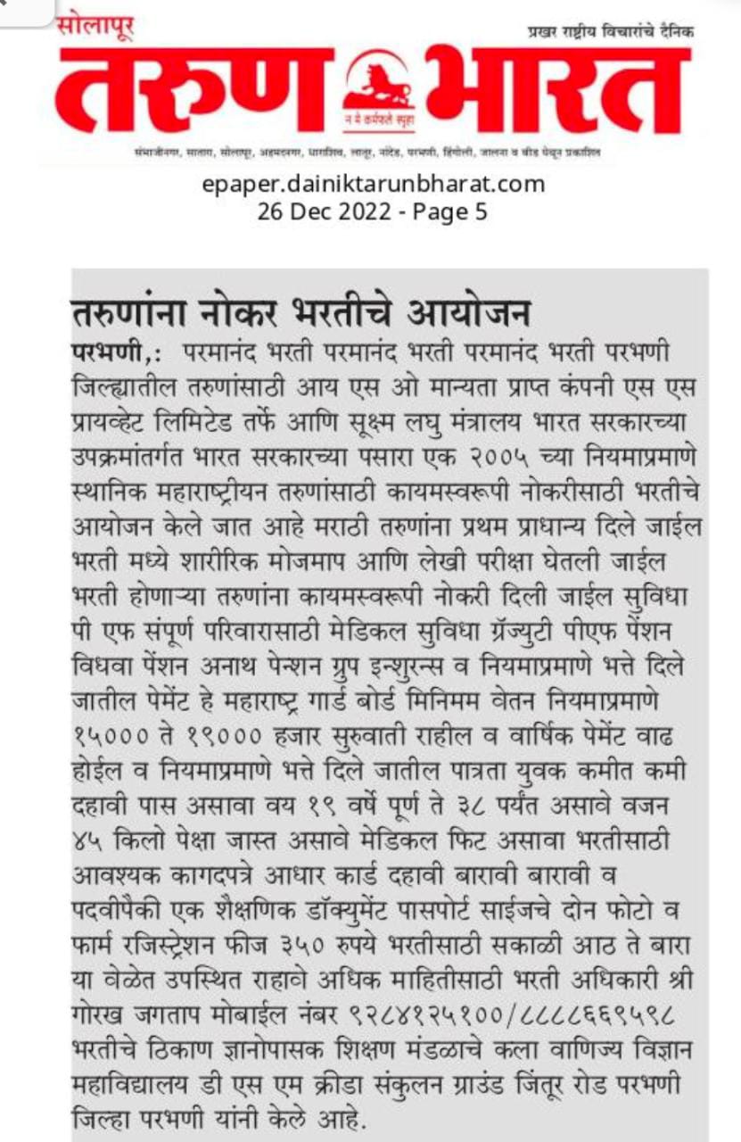 Maharashtra's No.1 Security Company, As per PASARA act-2005 we provide Security Traning to Unemployed Youth and provide 100% Placment.