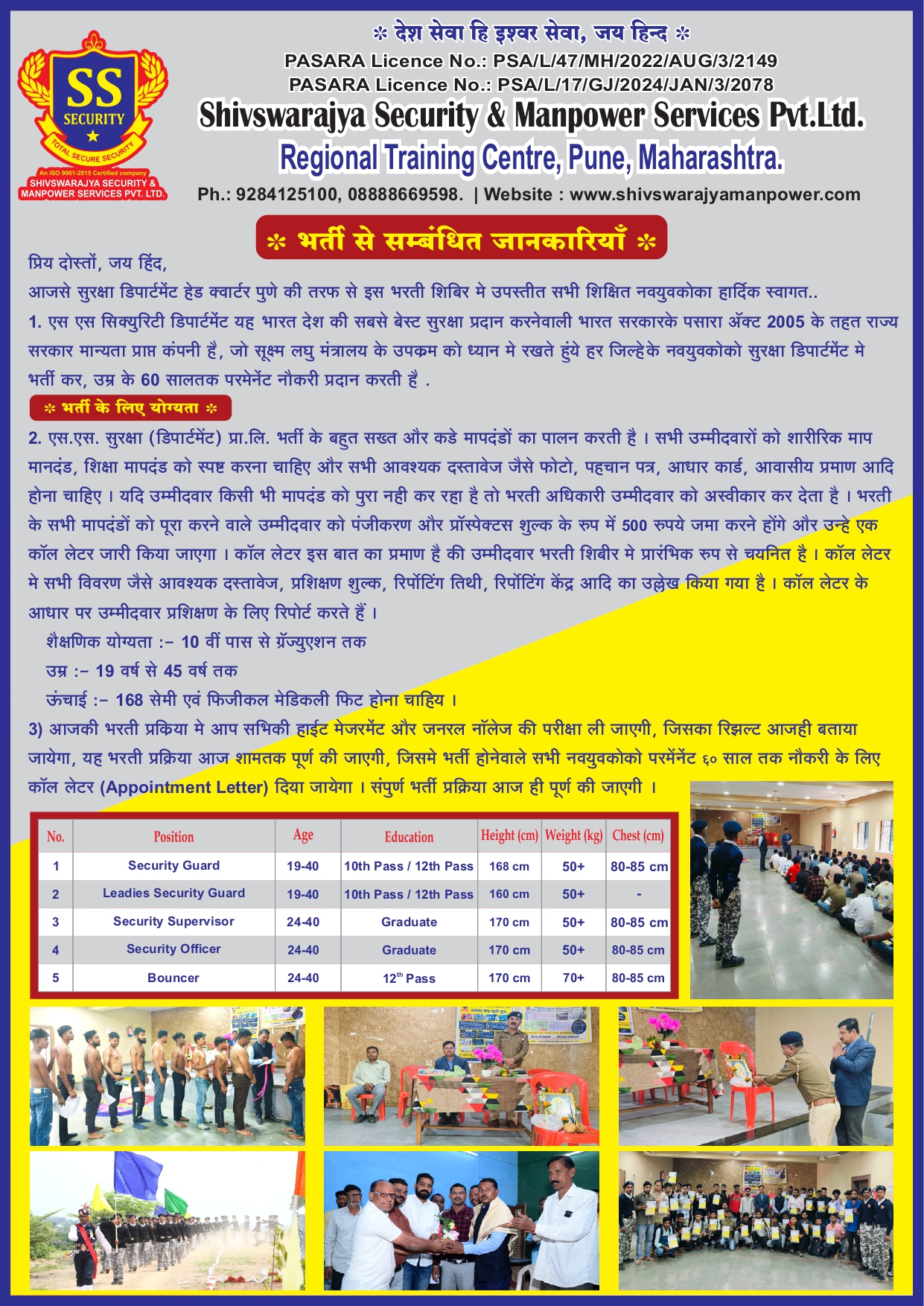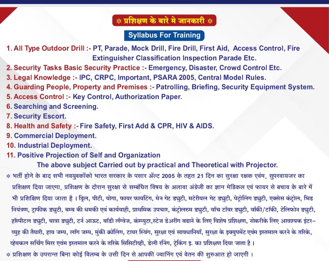 Maharashtra's No.1 Security Company, As per PASARA act-2005 we provide Security Traning to Unemployed Youth and provide 100% Placment.